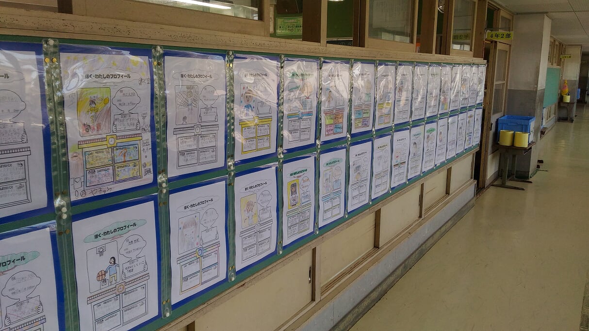 各教室前の掲示板がだんだんとにぎやかになっています。子どもたちの掲示物が学校に元気を与えてくれています。